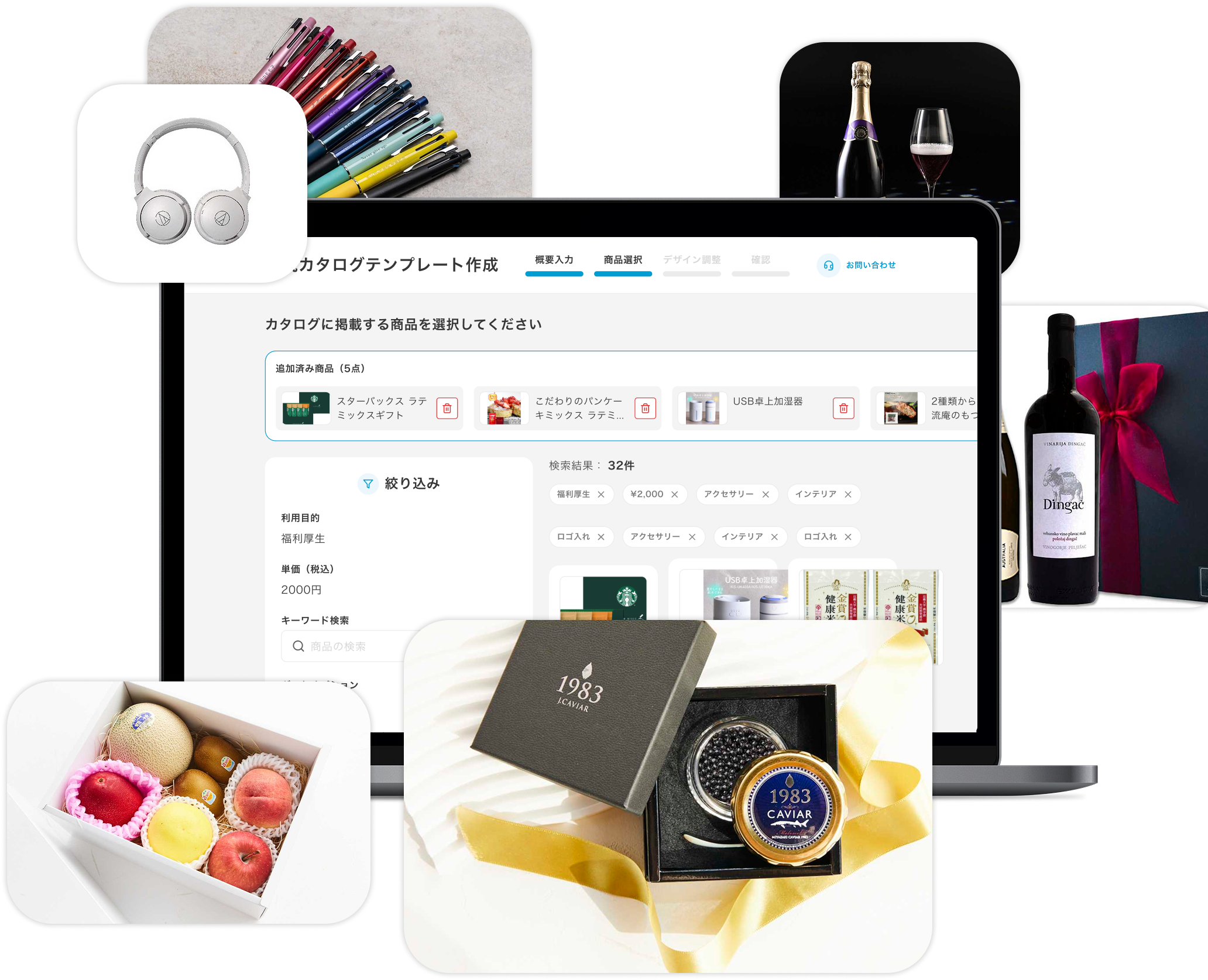 相手の好みやシーンに合わせて最適なカタログを作成できるので、あらゆるビジネスギフトに柔軟に対応できます。